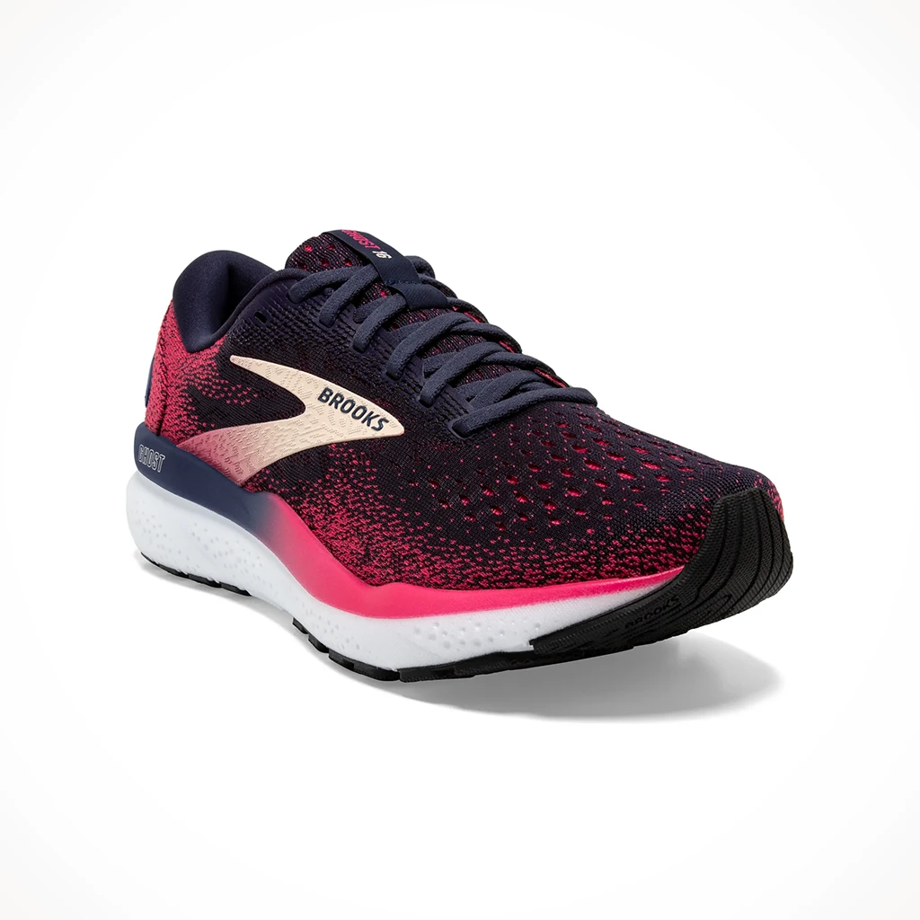 Step into the soft, smooth women’s Ghost 16. The updated, lightweight cushioning works with the enhanced upper’s secure and comfortable fit for a fresh take on one of our most-loved shoes.