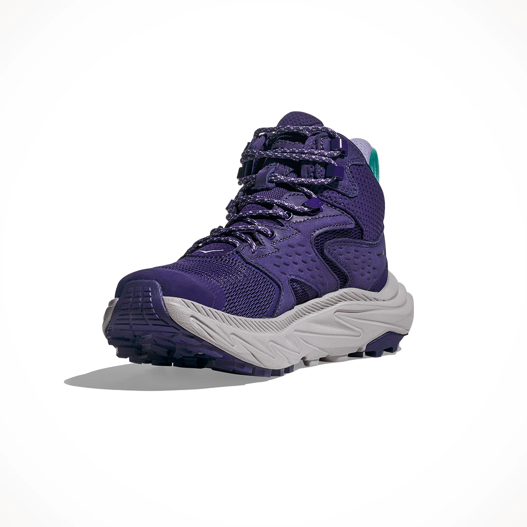 Scrutinized through the lens of sustainability, Hoka reimagined the beloved Anacapa Mid GTX with a renewed focus on earth-conscious materials. Updated with recycled yarn meshes, they enlisted a 30% sugarcane EVA midsole and Vibram® Megagrip outsole. Finished with metal speed hooks and a rubber toe cap, there’s no telling where this hiker will take you.