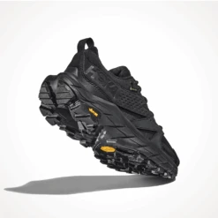 Feels like a shoe, wanders like a boot. A day hiker designed with responsible manufacturing in mind, the Hoka Anacapa Low GTX is a low-profile take on the Anacapa Mid GTX. Engineered from lightweight leather certified by the Leather Working Group, the versatile silhouette employs recycled polyester in the collar, mesh and laces. This innovative style applies signature HOKA extended-heel geometry designed for a smooth ride on the trails.