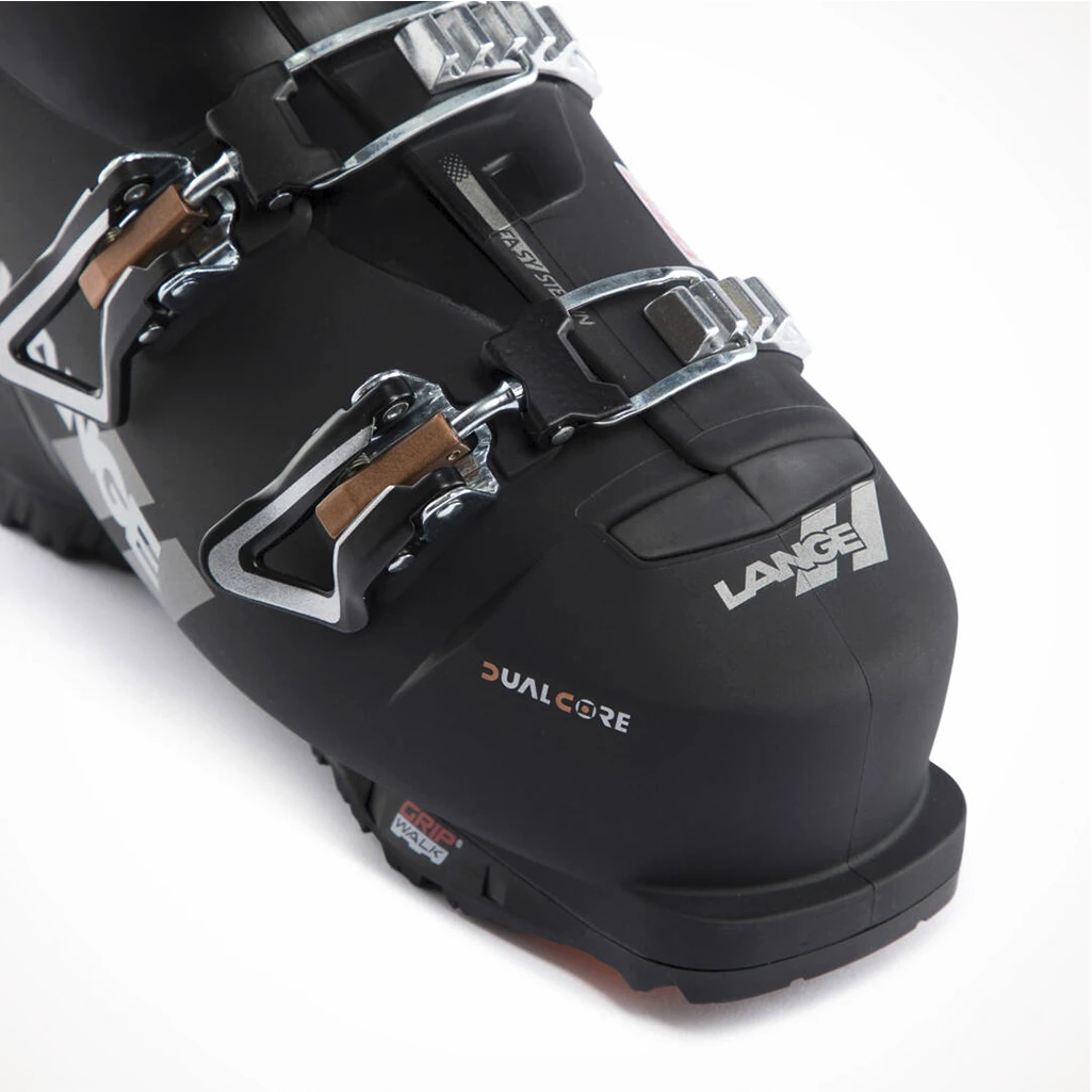 If you have wide feet and are looking for high performance in a comfortable ski boot that is adapted to the female body shape, then the LX is the right choice for you. The combination of Lange’s legendary performance and a wider fit, coupled with even easier foot entry and exit, ensures you stay comfortable all day long. Lange’s innovative, lightweight Dual Core construction guarantees efficiency, power and precision to make you one with your boot. Mounted on a Gripwalk sole and with a screw added in the shell, it offers more performance and equals the level of the RX boot. Special features for women skiers: a tongue designed to match the female body shape and provide greater precision and control, a thinsulate liner to keep the foot warm, a shell shape adapted for women’s calves and tibias. Don’t hesitate to thermoform your liners to obtain the best possible match for your feet.