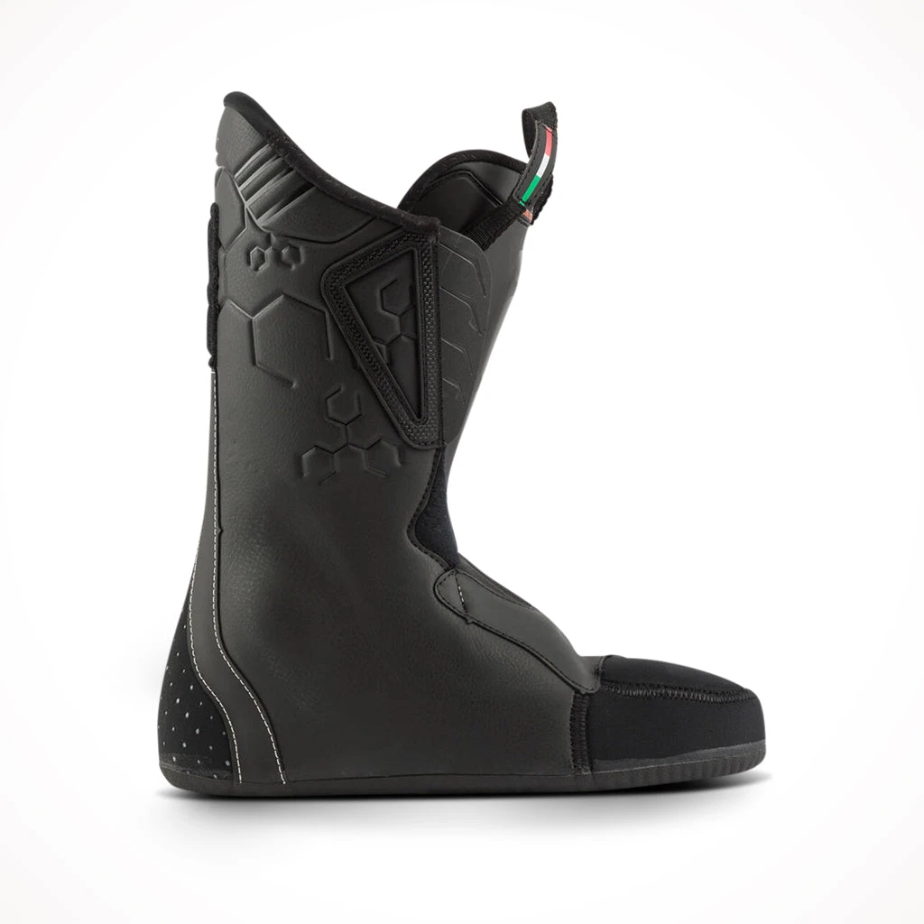 Lange’s Assisted Performance System amplifies your input to the boot through the mechanical advantage of their Dual Pivot and Suspension Blade technology. The design boosts input by up to 26%, giving you more power and control with less energy. The boot’s clean, consistent flex is combined with increased shock absorption through the shell for enhanced snow feel and contact. Like a full suspension bike, the combination lets you ski longer and more efficiently. Together with a 110-rated flex, this boot gives intermediate skiers a strong platform for pushing their skiing forward. At 100mm wide, Lange’s medium-volume last complements the thermoformable liner to offer all-day comfort.