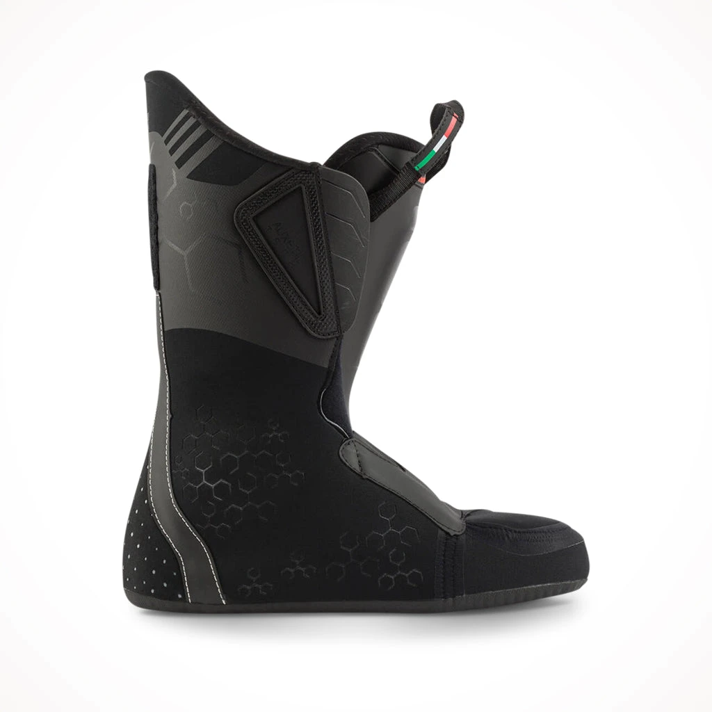 Lange’s Assisted Performance System amplifies your input to the boot through the mechanical advantage of their Dual Pivot and Suspension Blade technology. The design boosts input by up to 26%, giving you more power and control with less energy. The boot’s clean, consistent flex is combined with increased shock absorption through the shell for enhanced snow feel and contact. Like a full suspension bike, the combination lets you ski longer and more efficiently. Together with a 120-rated flex, this boot gives advanced and expert skiers a strong platform for ripping across the whole mountain. At 100mm wide, Lange’s medium-volume last complements the thermoformable liner to offer all-day comfort.