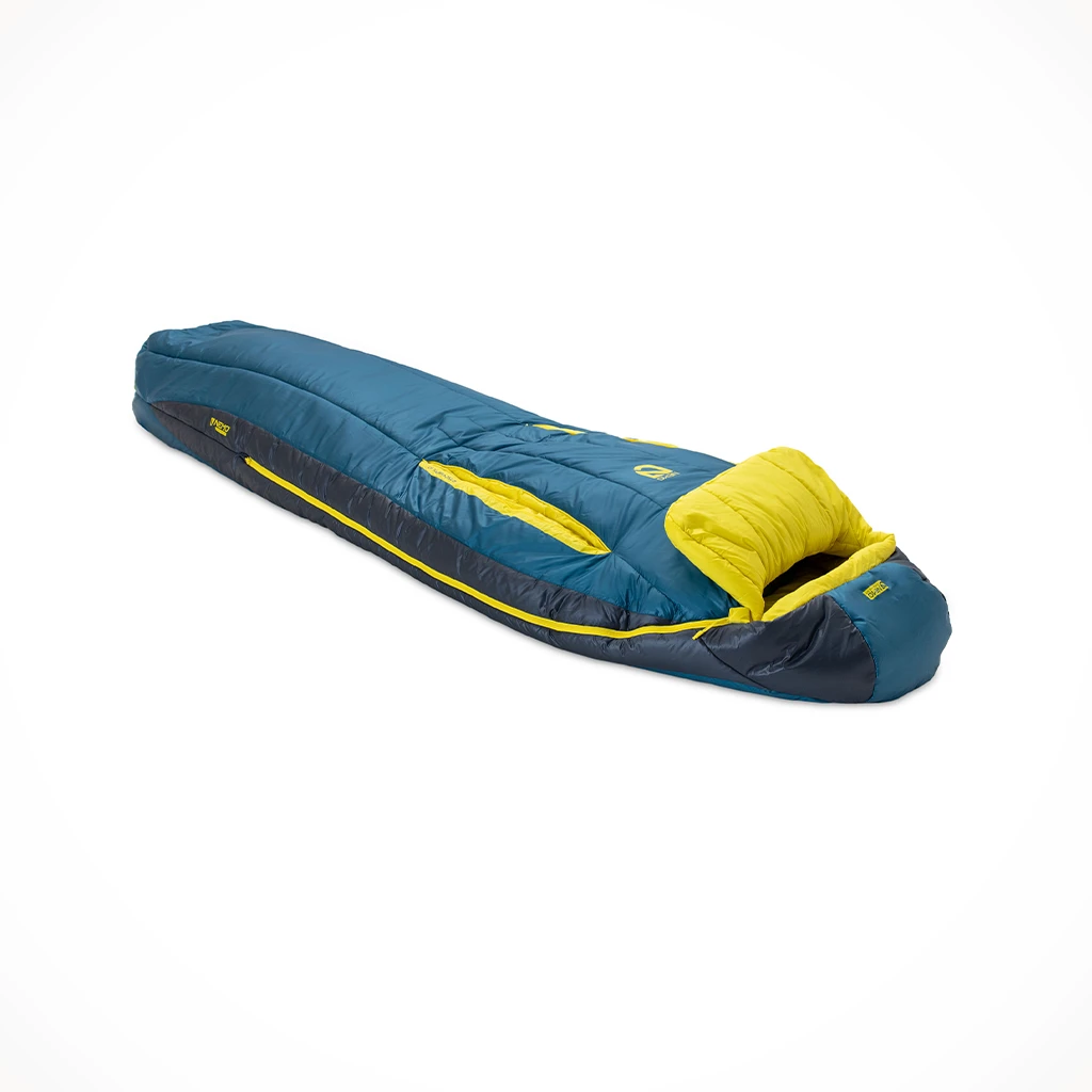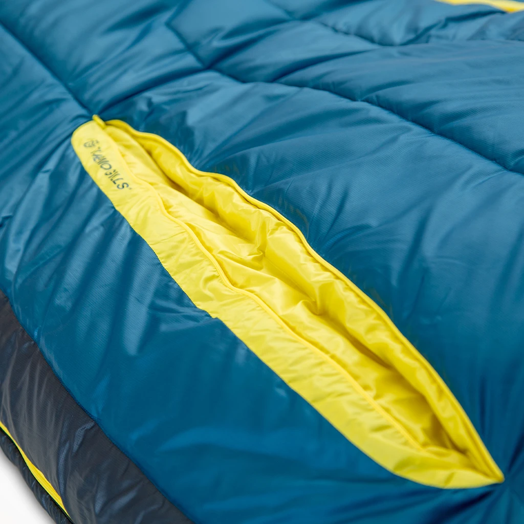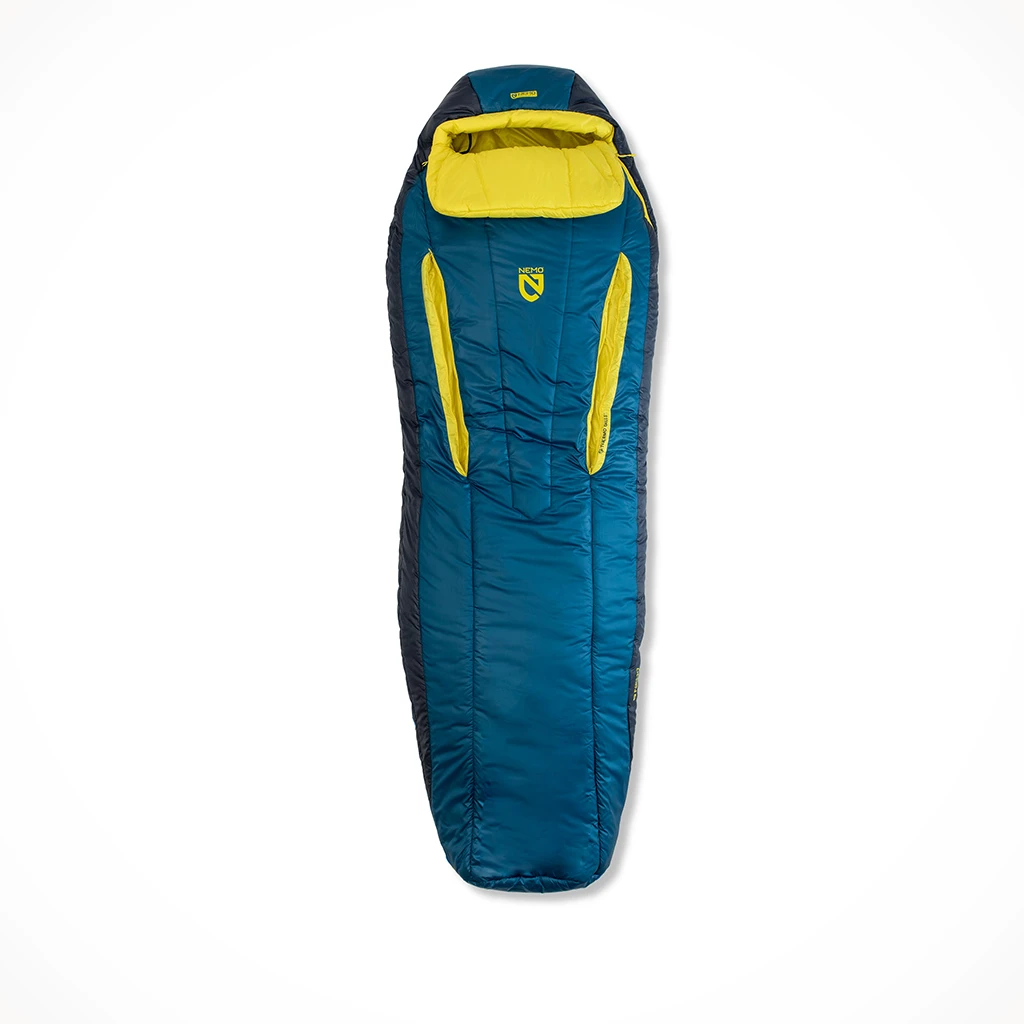 Endless Promise is NEMO’s commitment to reduce resource consumption, keep gear out of the landfill, and help preserve our planet for future adventures. All EP products are painstakingly designed to be mono-polymer in order to be easily, fully recyclable. In addition to the bluesign® approved shell and recycled liner, Forte is filled with 100% post-consumer recycled Zerofiber™ PCR synthetic insulation. This fill packs down small, maintains its loft, and provides warmth even when wet.