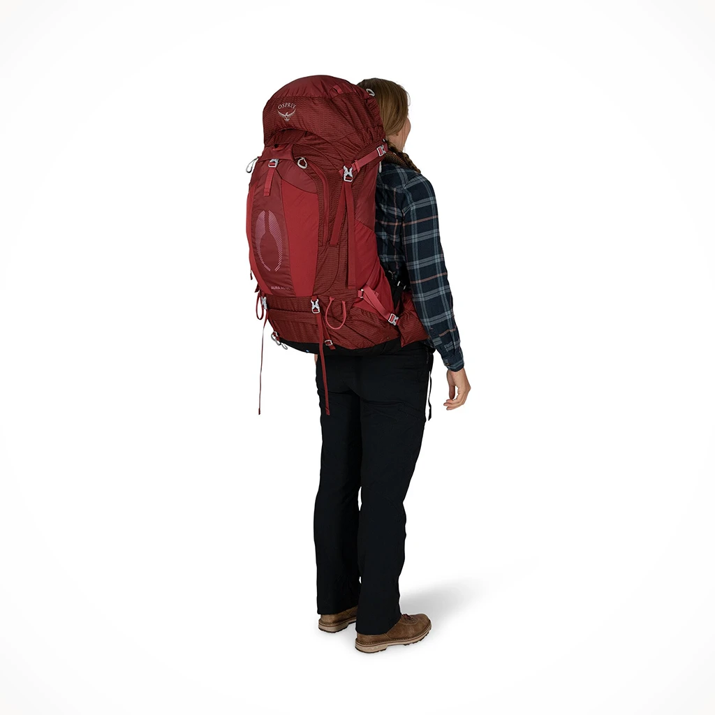 Tackle heavyweight weekends or weeklong backpacking trips with gravity-defying comfort and premium ventilation with the Osprey Aura AG 65 backpack. Featuring a women’s-specific fit, its innovative suspension and harness delivers a seamless fit that envelopes your back and hips in 3D-suspended mesh. From easy-to-use stretch mesh side pockets, Stow-on-the-Go trekking pole attachment and integrated raincover, the Aura AG 65 is a compromise-free women’s backpacking pack. Made with recycled main, accent and bottom fabrics.