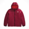 - Alpine helmet–compatible hood has a single-pull drawcord and high-loft draft collar