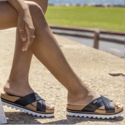 - Super soft unlined PVC Free vegan leather X strap slide
