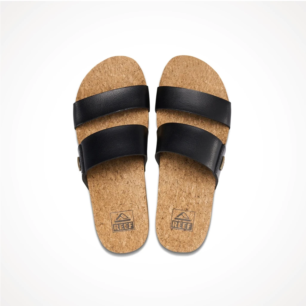 - Reef’s most comfortable footbed yet featuring the perfect blend of cushion and rebound support. This is a wider shape with generous arch support and heel cupping with 100% natural cork cover