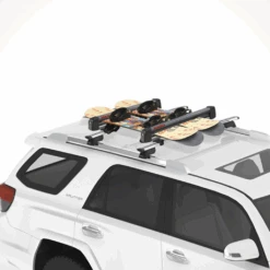- Easily carries six pairs of skis – up to 120 mm wide at the tip – or four snowboards.